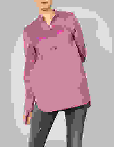 Das Blusenshirt zeigt Sie sowohl von Ihrer eleganten und als auch von Ihrer legeren Seite. Das Modell in verlängerter, femininer Schnittführung wird durch einen Stehkragen und eine verdeckte Knopfleiste ergänzt. Der cleane Look verfügt über einen abgerundeten Saumverlauf und hat dank der merzerisierten Beschichtung einen leichten Knitterschutz. Ein Must-have für moderne Fashionistas!
