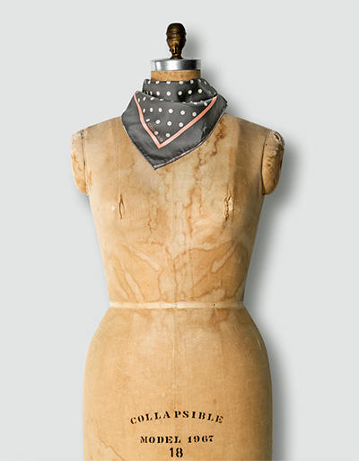 - Farbe/Dessin: Diagonal halbiert: eine Seite Fond in Hellgrau mit Paisley in Aprikot-Creme-Curry, die andere Seite Fond in Grau mit Dots in Creme