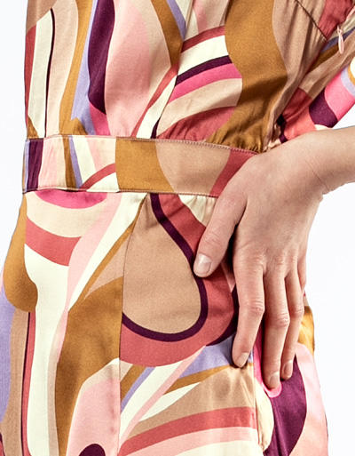 Mit diesem stylishen Midikleid ziehen Sie bewundernde Blicke auf sich. Das feminine Modell, mit verspielten Flügelärmel, begeistert mit einer fließenden Qualität aus Seide und präsentiert sich mit einem ausdrucksstarken, farbenfrohen Print.