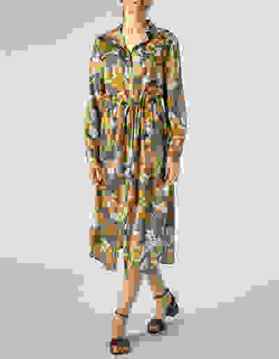 Mit diesem stylishen Midikleid ziehen Sie bewundernde Blicke auf sich. Das feminine Modell begeistert mit einer fließenden Crepe Qualität und einem ausdrucksstarken Flower Print. Ein Tunnel mit Bindegürtel in der Taille betont die feminine Silhouette, mit der durchgehenden Knopfleiste können Sie Bein zeigen.