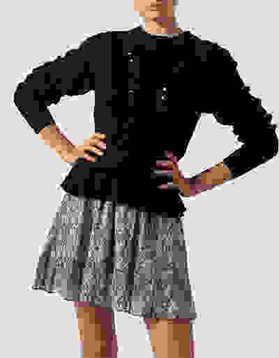 Verspielt und elegant zugleich ist dieser Pullover. Das taillierte Modell ist mit femininen Details und einem modischen Runshalsausschnitt ausgestattet. Feine Volant-Details sorgen für Blickfänge, während Cutouts das Dekolleté optimal unterstreichen.