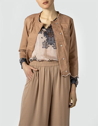 Eine stilvolle Ergänzung, verspielter Casual Kombinationen ist diese Jeansjacke. Das Modell präsentiert sich mit offenen Kanten und stilvollen Perlenbesatz am Saum und Ärmel. Kombiniert mit Basic Essentials gelingen Ihnen moderne Looks.