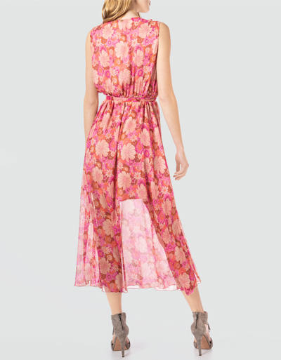 Dieses Kleid überzeugt mit einem farbenfrohen, floralen Dessin und sorgt mit einer Crêpon-Qualität für leichte Trageeigenschaften. Die gefütterte Verarbeitung, sowie das Taillenband, bieten dabei zusätzlichen Komfort, während Rüschendetails und ein weiter Saumverlauf das Gesamtbild charmant abrunden.