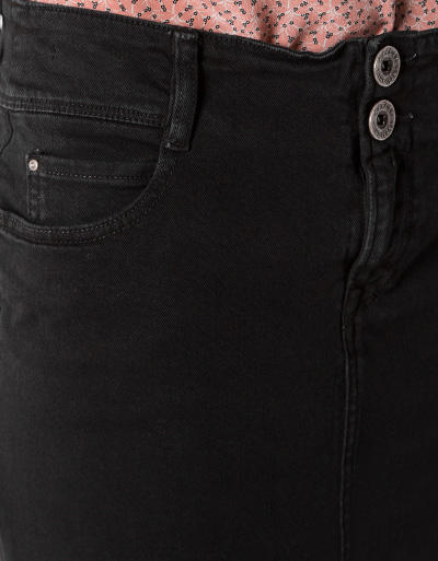 schmalen Schnitt bekommt mit dem Black Denim einen rockigen Look.