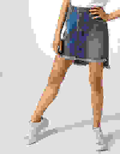 Dieser Jeansrock lässt Spielraum für verführerisch schöne Casual-Ensembles. Die ausgefranste Kante am Saum sowie ein klassischer Five-Pocket-Style heben das Modell auf das nächste Fashion-Level. Daily-Chic par excellence!